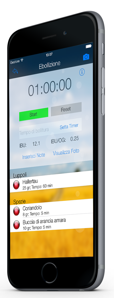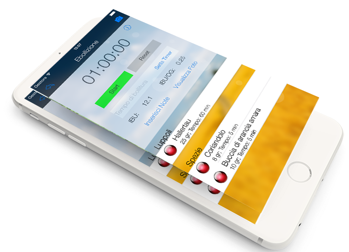 In base a luppoli e spezie inserite si genera un Timer che avverte l’Homebrewer 1 minuto prima dell’inserimento in pentola!