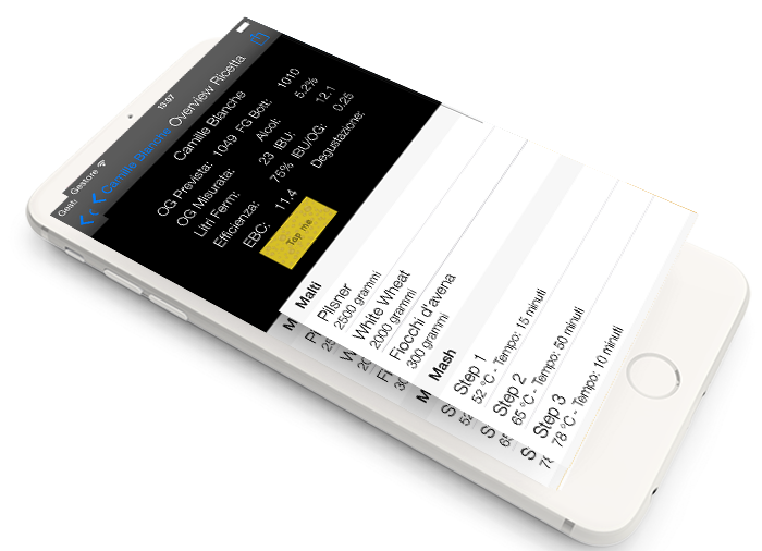 Durante la fase di preparazione della ricetta sono forniti importanti parametri come la densità iniziale (OG), la percentuale dei singoli ingredienti, i valori di IBU ed EBC.